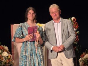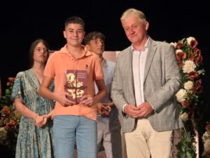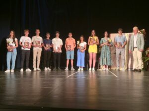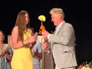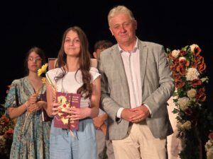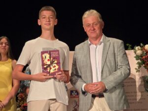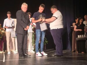 Петар Крстић, ученик генерације наше школе, поносно је стајао на сцени, са осталим ученицима генерације младеновачких основних и средњих школа.