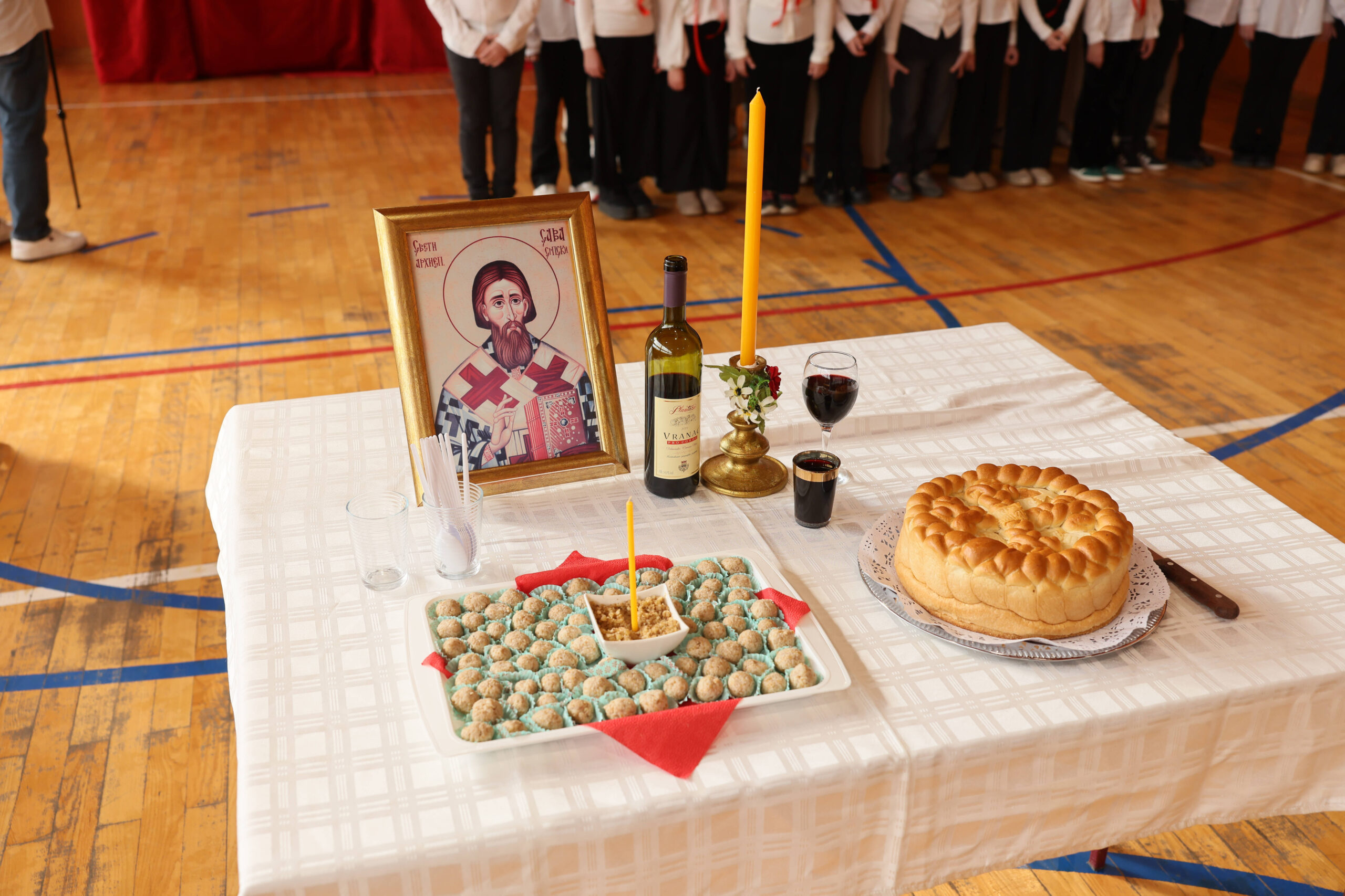 Након сечење славског колача, присутнима се обратила директорка школе Ивана Митровић, а програм је настављен светосавском приредбом и коктелом.