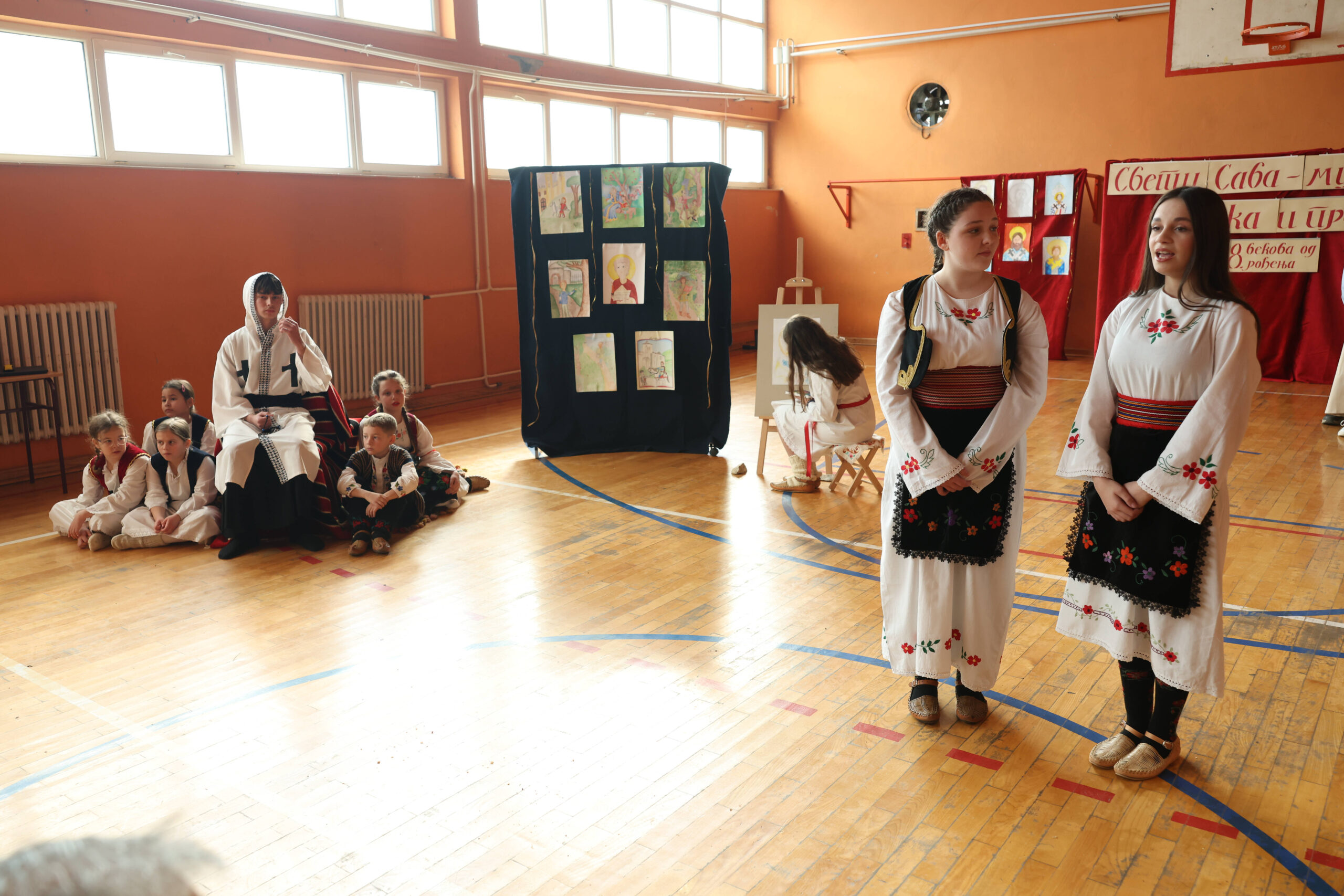 Ликовном делу сценографије допринео је наставник ликовне културе Милан Аћимовић са ученицима 7. и 8. разреда који су вешто цртали Растка Немањића као дечака, младића и монаха и светитеља Саву.