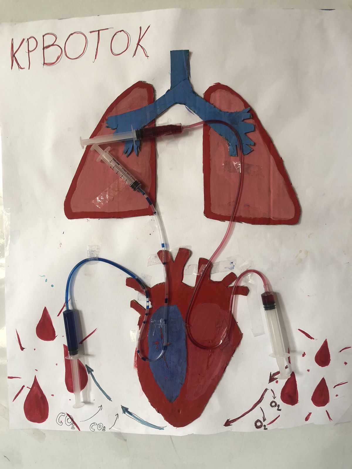 * израду интерактивног паноа на коме је приказана циркулација артеријске и венске крви и размена гасова у плућима